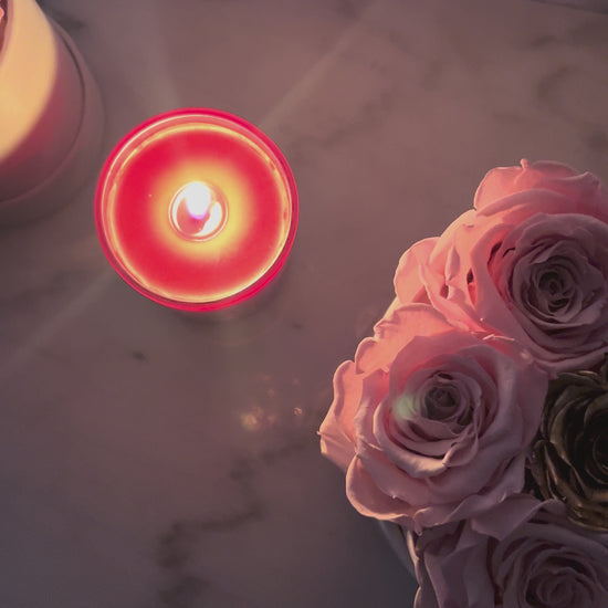 This handcrafted arrangement features five XL preserved dusty pink Ecuadorian roses in a rich crimson hue, encircling a radiant 24K gold-finished centerpiece rose. Designed in a sculptural stoneware bowl, its minimalist form is elevated with our signature 3D embossed logo, delicate luxury accents, and a satin-lined base.